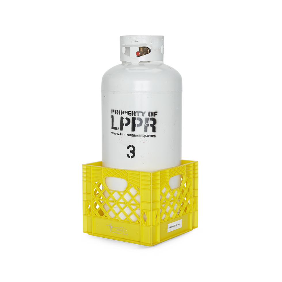 Propane Tank, 10 Gallon + Yellow Milk Crate